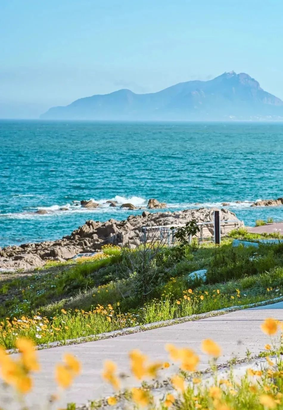 烟台的海通透度极高,登上高处的岛屿和山包,可以清晰的看到远处的城市。