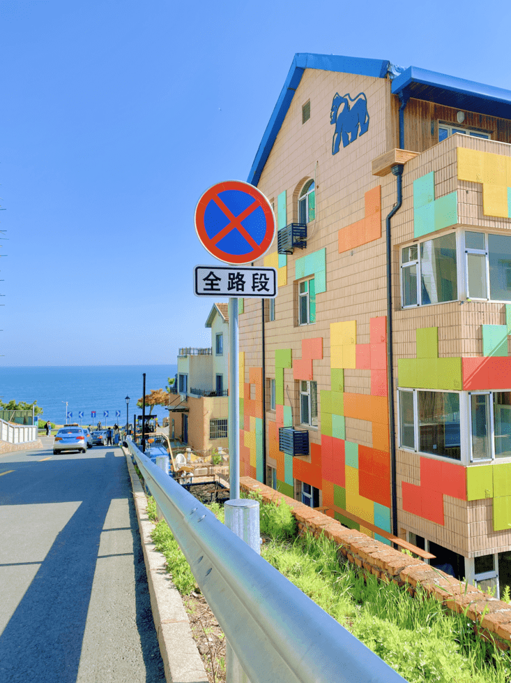 这条路的尽头是海,两侧是风格独特的房子。蓝天、绿树、街道、房子,相互映衬,像极了动漫中的场景,许多网友都称这里为“威海小镰仓”。