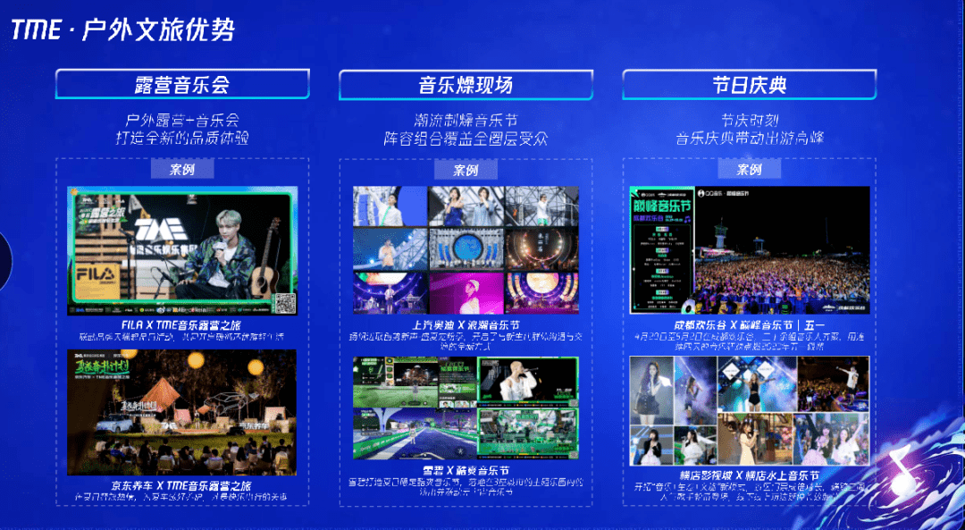 不同的音乐演出形式,打造“音乐+文旅+户外”的泛休闲社交方式,让年轻人因为共同的爱好聚在音乐节现场,音乐节相当于纽带,将喜爱音乐节的粉丝在线下产生连接。