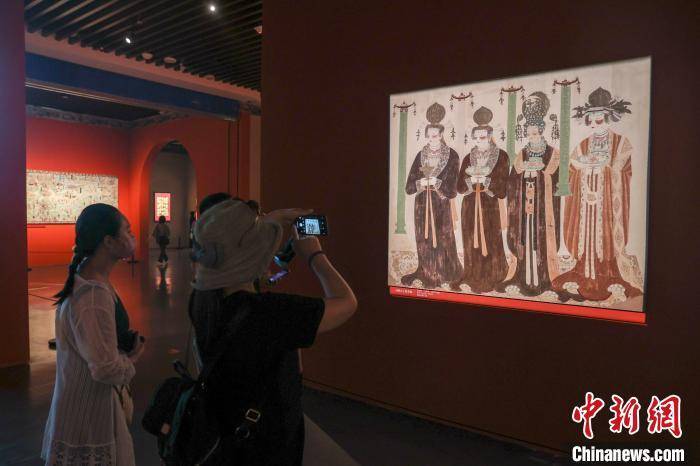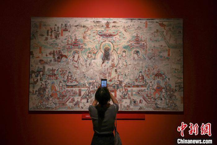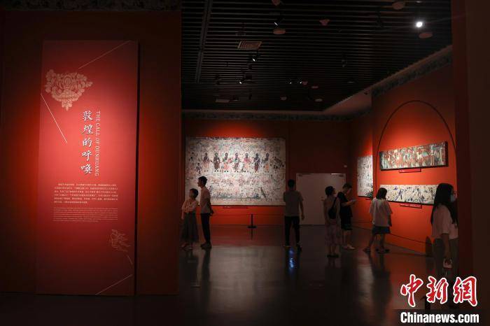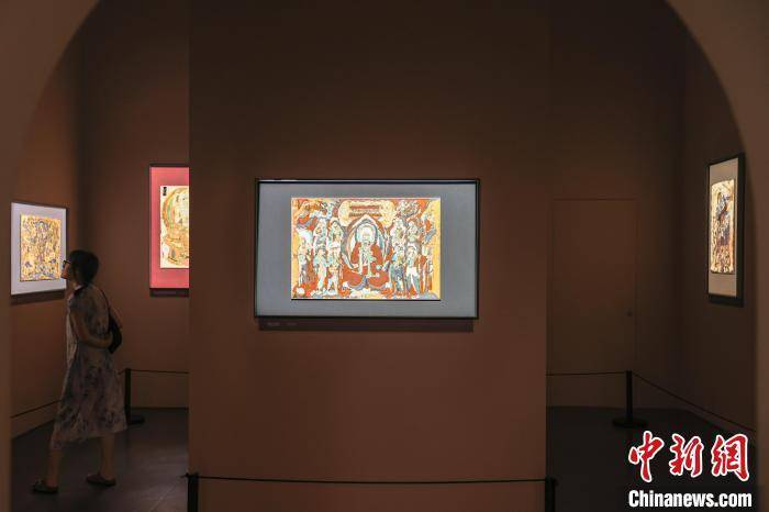 图为展厅内陈列的敦煌壁画主题瓷画吸引市民参观。 刘力鑫 摄