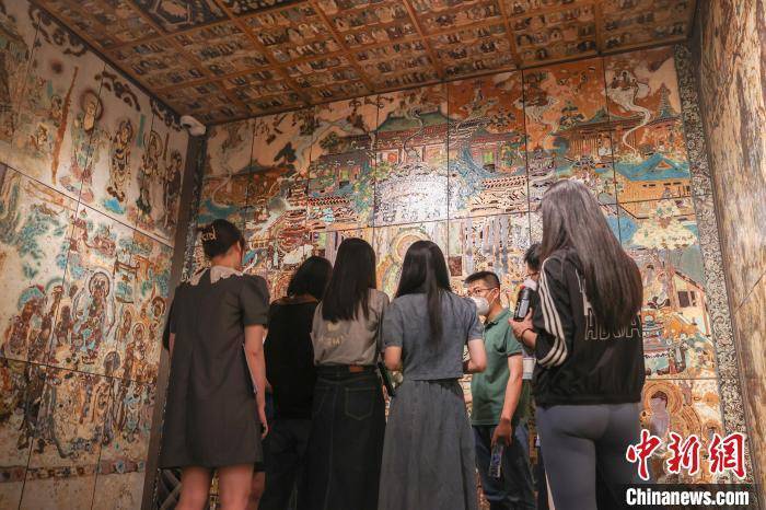 图为一群观展的学生在展厅的敦煌·瓷窟内聆听老师的讲解。 刘力鑫 摄