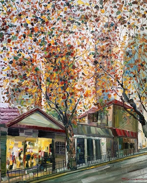 12月的上海犹如一位楚楚动人、婀娜多姿的美妇人。冬日暖阳,金黄色的梧桐树叶透闪出一丝灵动的气息,少许艳红的枫叶和嫩黄的银杏叶衬托出浓郁浪漫的情怀。一夜北风掠过,洒了满地的“黄金叶”,引来众多时尚情侣、摄影爱好者驻足留影。我也喜欢冬天的感觉、冬夜的遐想。还记得2018年12月在永嘉路的工作室窗前拍下雪花纷飞的街景,更怀念2012年12月从巴黎回沪后的那场让路、车、屋都银装素裹的鹅毛大雪。长夜漫漫,思绪万千。