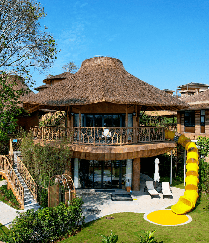 酒店主楼的4大主题度假房型也非常不错,分别是明亮温馨的戏水主题、浪漫典雅的星空主题、神秘独特的树屋主题,以及质朴大方的原木主题。它们以东南亚建筑风格为主,精筑建面约50-160㎡,让你的假期在自然与惬意之中度过!幸福感爆棚!