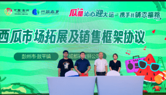 除了传统的歌舞观赏,互动游戏,今年西瓜文化旅游节开幕式还呈现三大特色:一是注重资源推介,镇领导卖力推介除西瓜之外的川芎、泉水、川西林盘、风筝、浅山旅游等文旅融合的产业;二是注重质量品牌,在开幕式上为敖平西瓜栽培提供技术支持的国家西甜瓜育种技术体系成都综合试验站站长、四川省“十四五”蔬菜育种攻关首席专家房超颁奖;三是加强与龙头企业合作,为民惠民,四川彩食鲜供应链发展有限公司与敖平镇签订西瓜市场拓展及销售框架协议,进一步拓宽市场销售渠道。