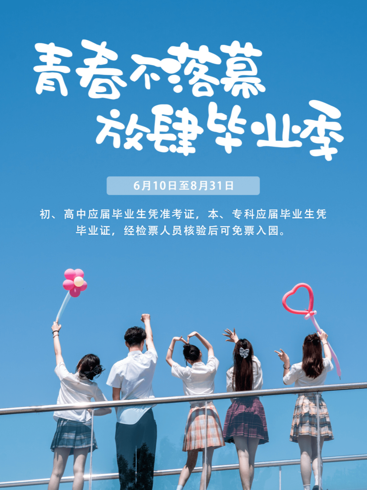 又是一年毕业季,青春不散场,一起欢乐行。6月10日至8月31日,郑州园博园面向2023年初/高中、本/专科应届毕业生免票。
