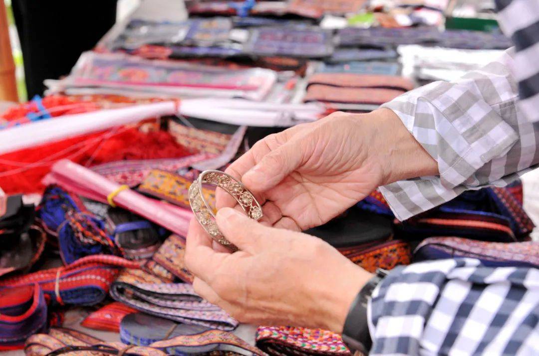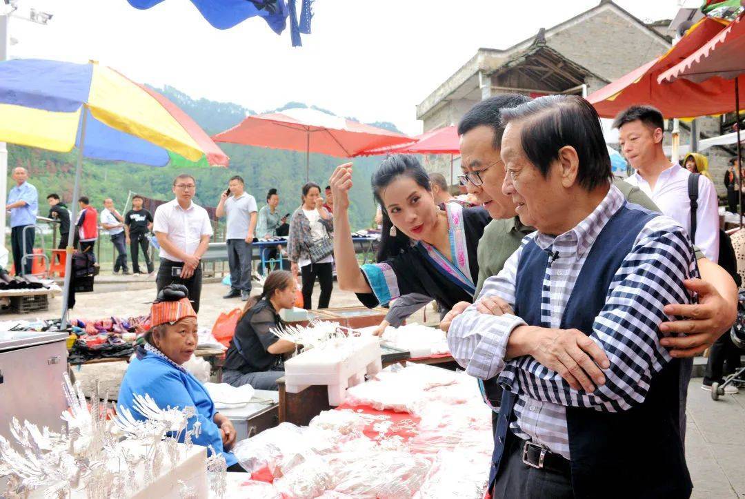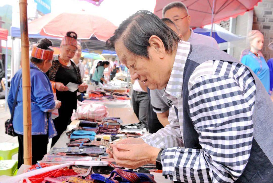 韩美林一个摊位一个摊位仔细地看,85岁的绣娘奶奶还热心提醒韩美林,“那个是机绣的,这个才是手绣的。”虽然艺术大篷车一行是从外地来,但每一个当地摊主都耐心介绍着手中绣品和苗银首饰上各类纹样的吉祥含义,蝴蝶、小猫、龙、凤、花、鸟……韩美林边走边看边感慨:“谁说普通的生活不能艺术,看看这最高级的艺术生活。我们跋山涉水、上下求索的艺术灵感,就刻在他们的基因里,所以我们必须得来向他们学习,向民间学习。”