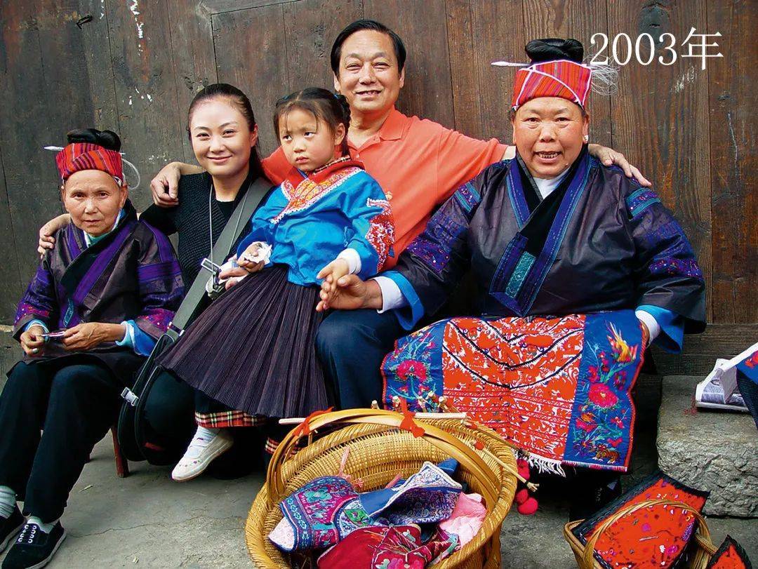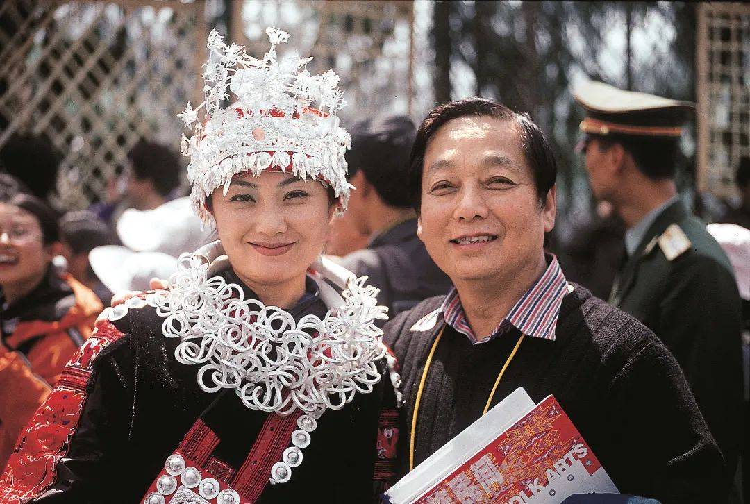▲2003年,韩美林周建萍夫妇曾在施洞镇举办的苗族姊妹节合影留念