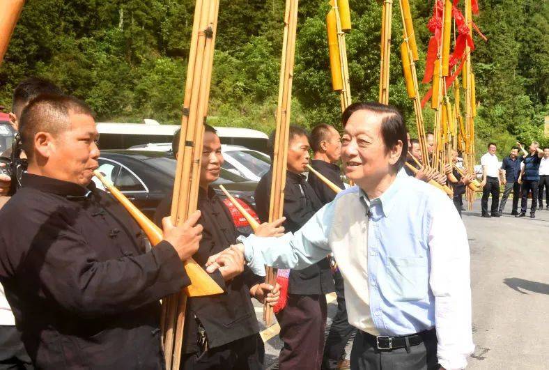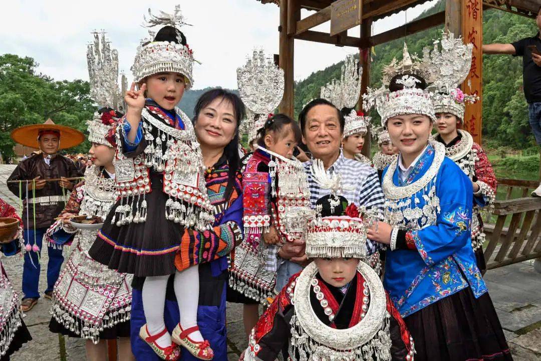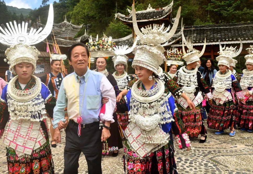 ▲韩美林与红阳苗寨人一起跳起盛装踩鼓舞