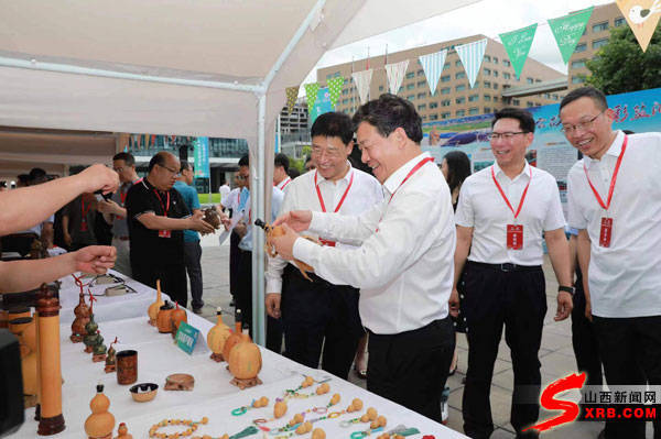 运城文旅资源宣传展上,“一缕曙光”(世纪曙猿)、“一堆圣火”(西侯度)、“半个蚕茧”(西阴考古)、“一池白雪”(盐池)、“一位圣人”(关公)、“一处古建”(广仁王庙)、“一壁青绿”(永乐宫)等河东文旅精品吸引了在场观众;来自运城市10个县(市、区)的非遗技艺、工艺美术产品引得市民驻足观赏。