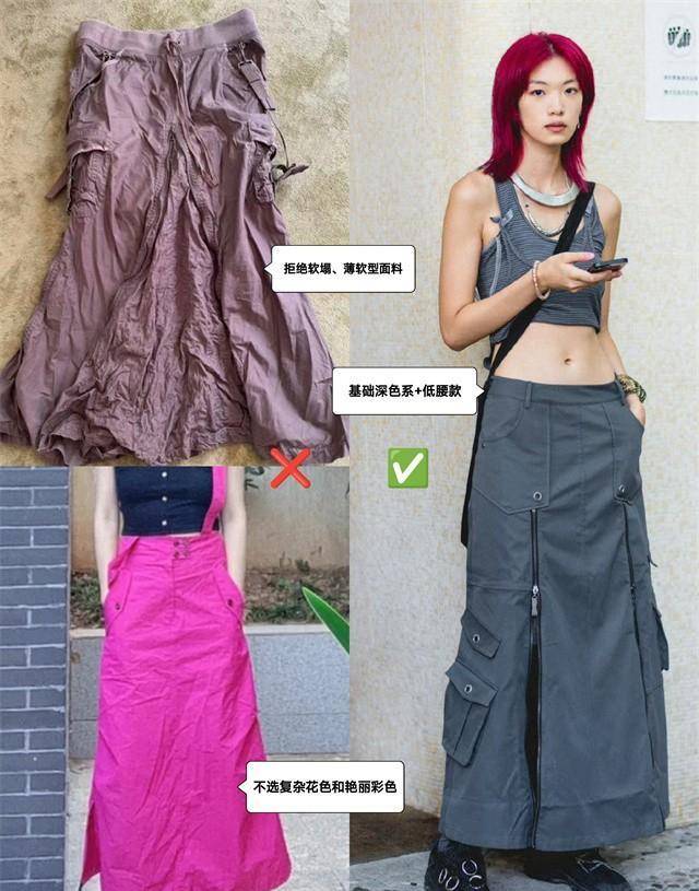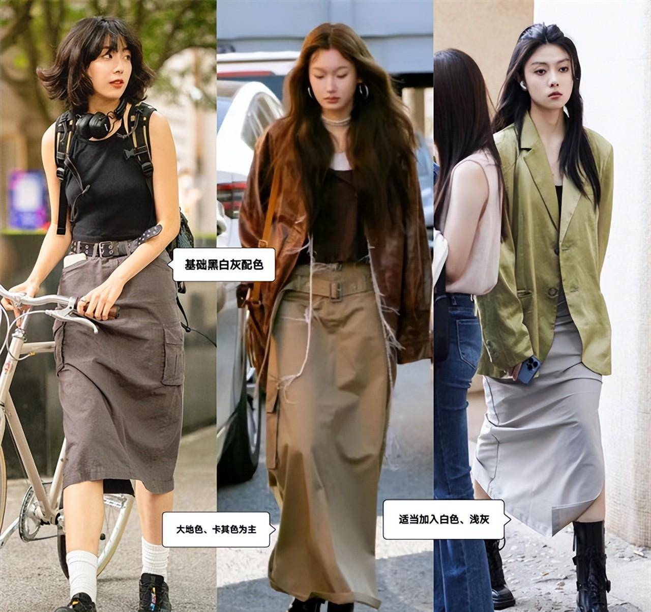 可以选择最基本的黑色、白色和灰色,用小面积的白色作为亮度。以大地色系或卡其色为主色调,轻松打造末日荒原风。加入浅卡其色、暖白色或浅灰色可以搭配运动裙搭配其他低明度、中高饱和度的颜色~