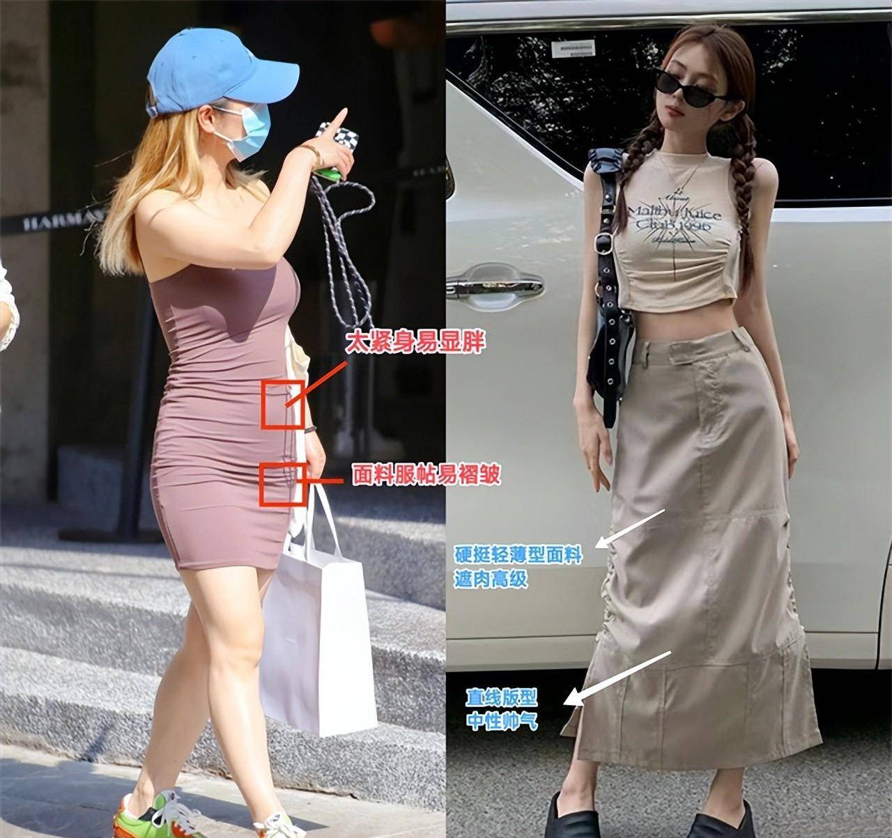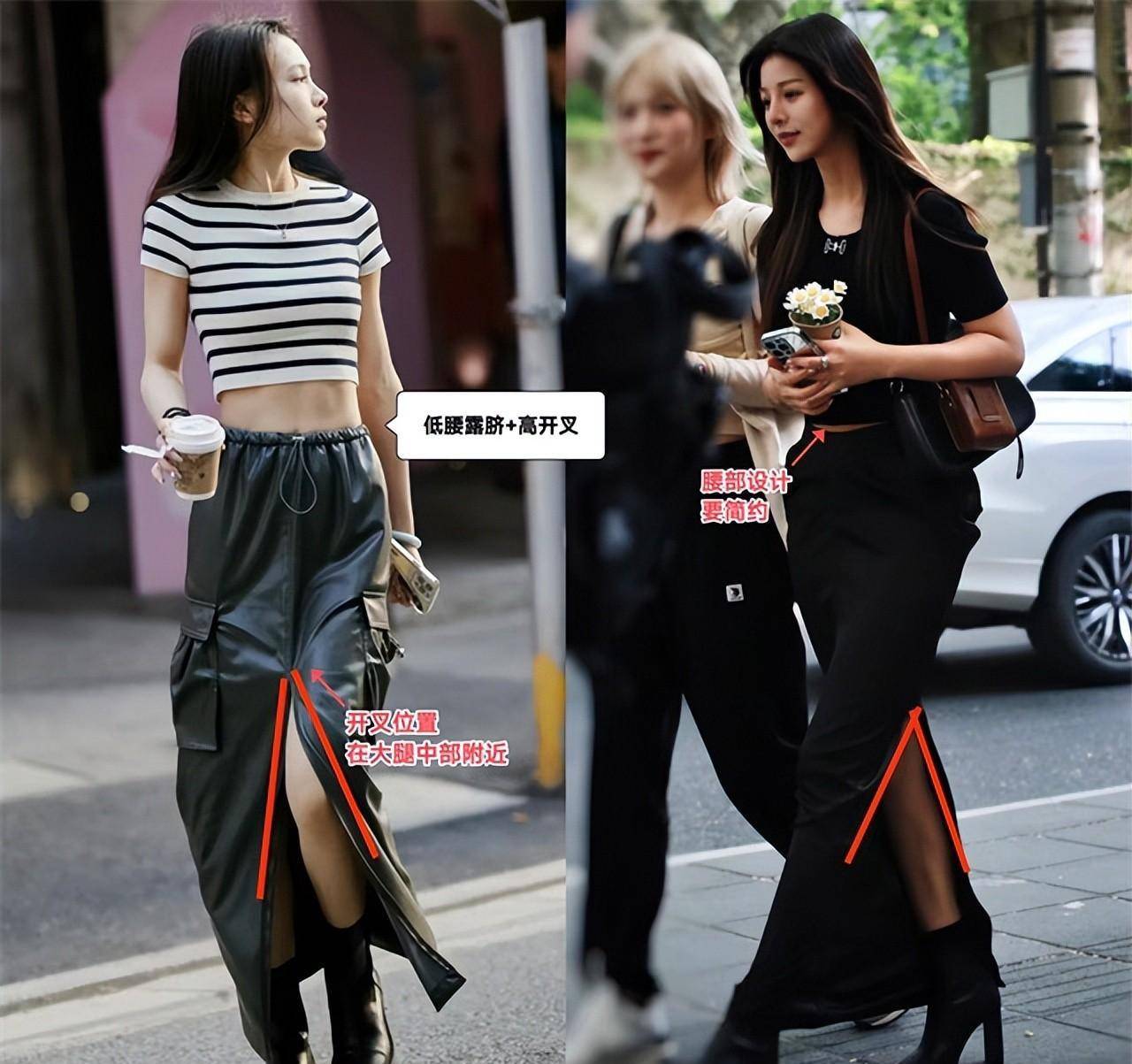 细腰的姐妹们选择左边的低腰露脐款,大胆穿短款上衣,秀出妖娆时尚的大长腿;粗腰紧身宽底裙,高时尚+高跟鞋塑造魔鬼身材。