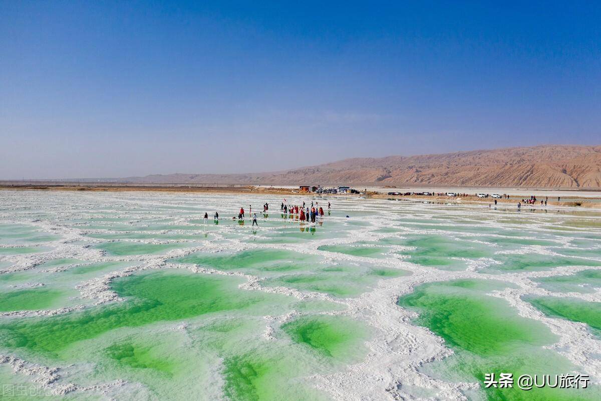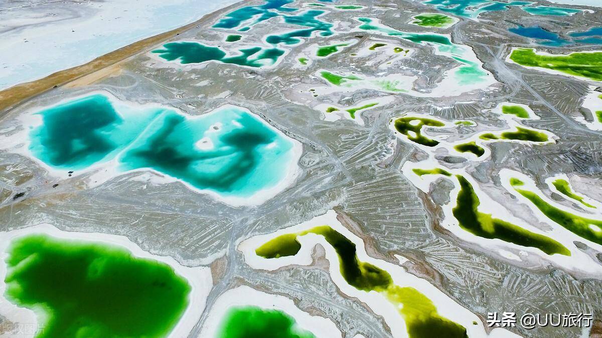 首先是茫崖翡翠湖,比大柴旦翡翠湖的颜色更统一,纯净透亮翡翠绿色,像是一颗颗翡翠散落在盐滩上,不含一丝杂质。这颗星球表面有着珠光宝气的透亮。
