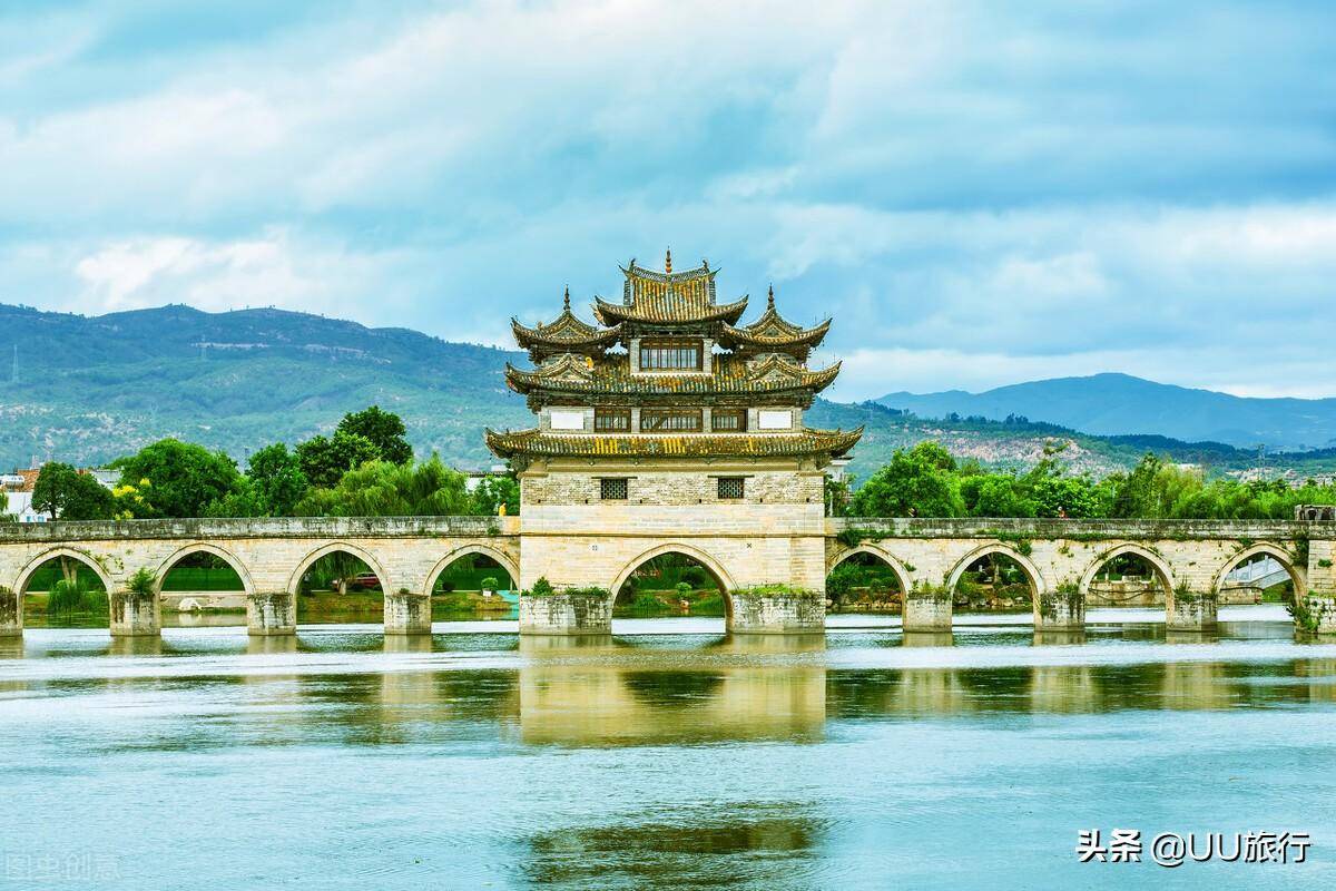 火车经过双龙桥和乡会桥两站,都会停留半小时。双龙桥始建于乾隆年间,最开始建了3孔,道光年间又扩建了14孔。从泸江上看,双龙桥的17个桥孔整齐地排列在河面上。