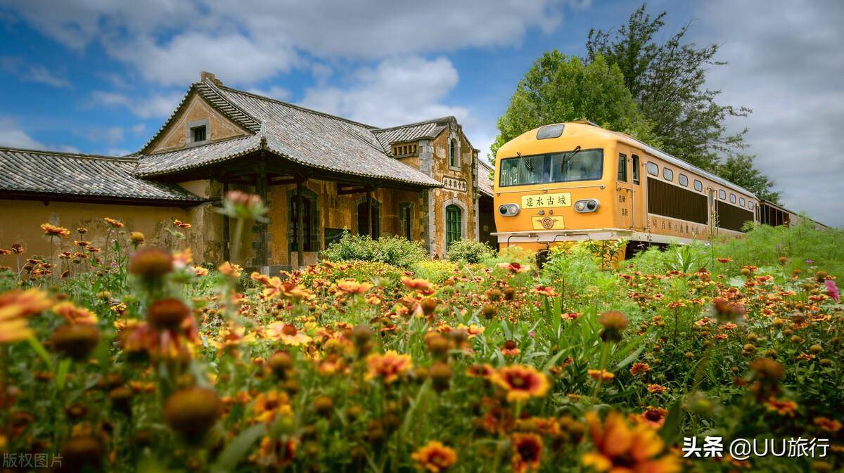 始发站临安站,至今还是具有年代感的法式建筑风格,停靠在站前的土黄色车厢,随意拍照,都是走在明信片里。坐进火车车厢,分分钟穿越回上世纪,列车缓慢行驶,这份车马慢,需要慢慢品。