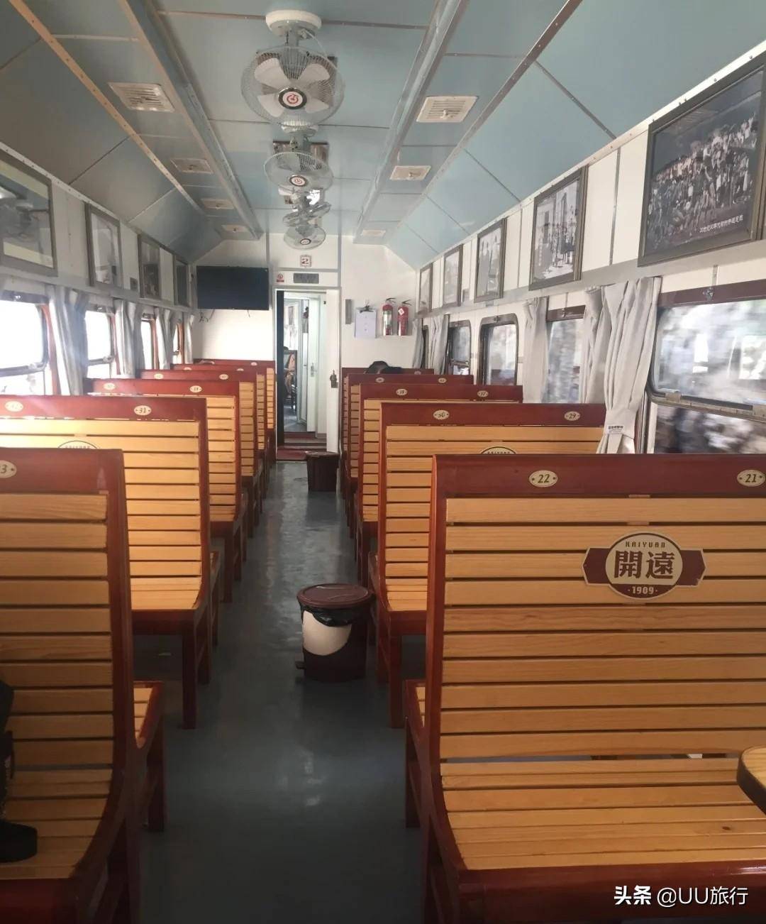 时光匆匆,车站的钟还是民国模样,车厢内的座椅复刻了上世纪火车车厢相同的座椅。换上一身复古风格的服装,拍照一定是满满的网红感。