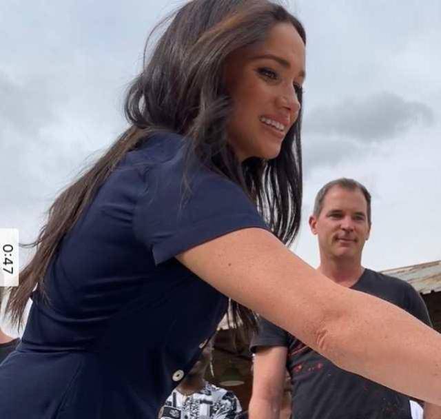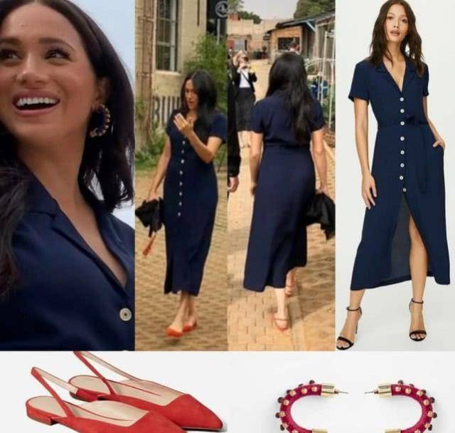 梅根继续南非行,穿千元蓝裙显瘦又时尚,被粉丝喊“女王”