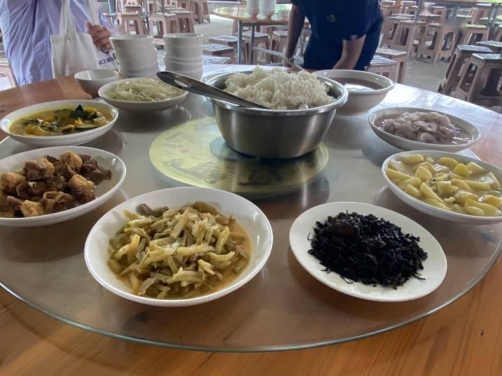 11时许,房间门开了,消失许久的小翁出现了。她带着大家来到一个类似蔬菜大棚的地方用餐。途中,潮新闻记者注意到园区中停靠着四五辆大巴车,还不时有载着人的车进入。