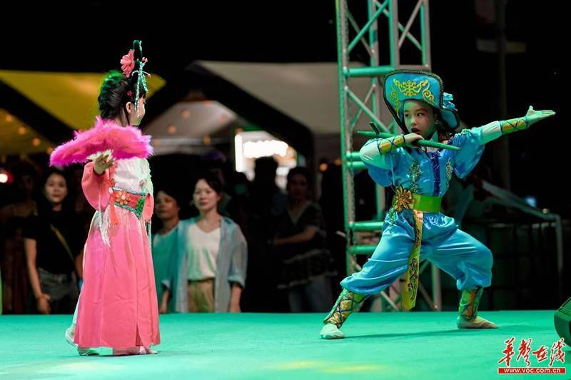 开幕式现场,湘剧国家级代表性传承人、“文华奖”“梅花奖”双奖得主曹汝龙与青年音乐人游金跨界搭档一曲《华夏》吟唱出中华历史的绵长画卷;长沙弹词市级代表性传承人王志敏、长沙快板传承人胡聪俊联袂合作曲艺说唱《星城文旅推荐官》,用长沙弹词与长沙快板展现星城长沙的文旅网红地标;孩子们带来的少儿戏剧表演《娃娃新唱花鼓戏》秀出非遗新风采,传递着少儿非遗梦。