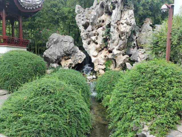 全园面积总共8亩,仅假山就占3.7亩,在里面几乎走几步就能看到假山,而这些假山全都是用的“中国四大奇石”之一的太湖石。