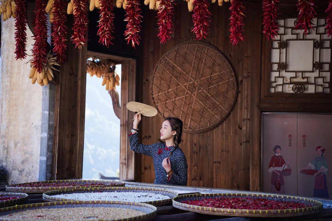 在篁岭,家家户户都晒着农物,每推开一扇窗,都是一幅不同的画卷。晒秋人家里,晾晒的满是对未来的希望。
