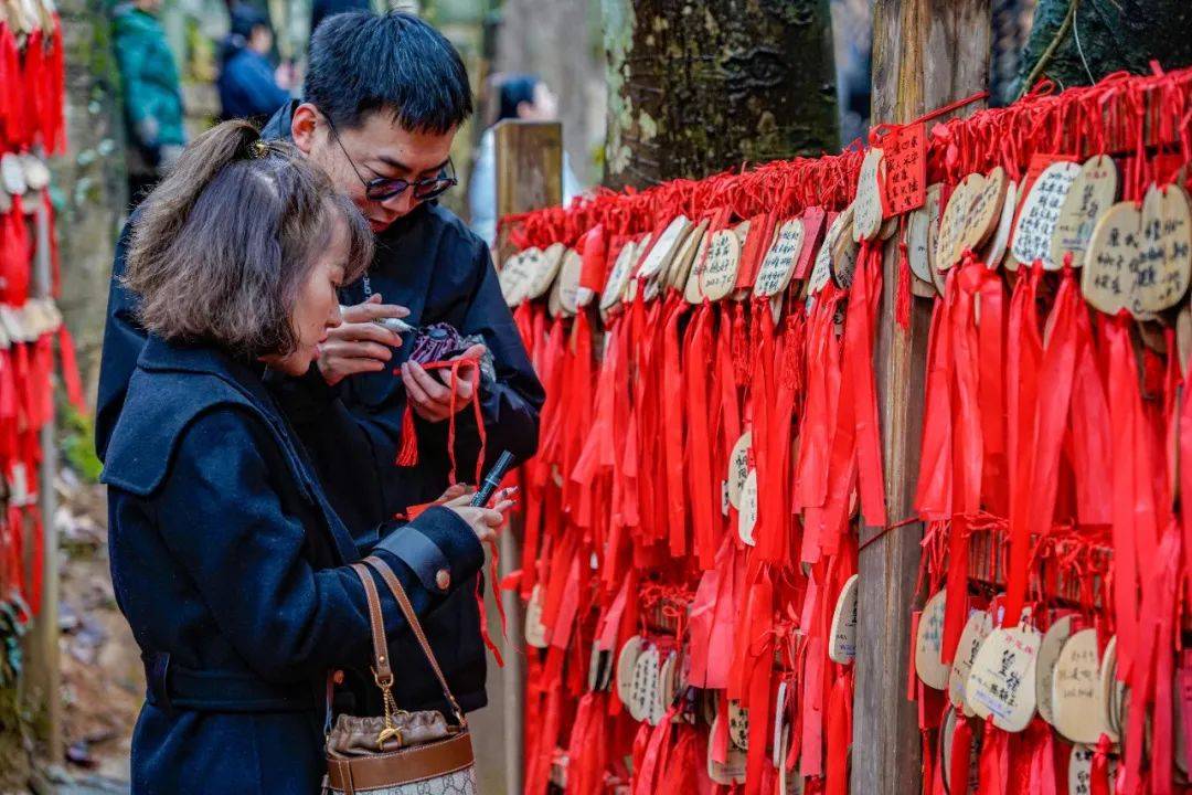 篁岭五显庙,祈求的是福禄安康。在庙里许下你内心的祈愿,亲手将许愿牌系于枝头,为未来许下美好心愿。