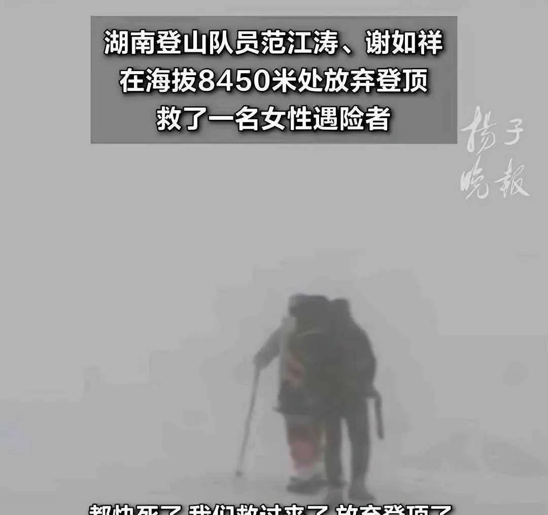 登顶珠峰是每个登山爱好者的梦想和荣耀,每年都有很多人为自己的梦想而努力着,但登顶珠峰并不是一件轻而易举的事情,需要的大量的物力、财力和良好的身体条件,否则就会面临失败甚至生命的代价。但最近有湖南两名登山队员在8450米时,为了救助一名遭遇生命危险的刘姓女登山队员,放弃准备多年的梦想,成功将刘女士送到C4营地,帮助她转危为安。这本是一件令人感动的救人故事,他们坚持生命至上,在近在咫尺的峰顶和成功面前,他们果断选择了救人,这和平时我们救人还不一样,因为恶劣的天气和陡峭的崖壁环境,随时都可能发生意外和危险,所以我们都由衷敬佩两位登山队员的英雄壮举,这种行为也值得我们深入学习和大力宣扬。