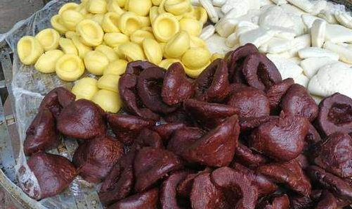 这是大叔家免费吃的杂粮馒头,有白面的,有紫薯面的,有玉米窝窝头,颜色也是五颜六色的,看着很有艺术感,吃起来也十分美味,可扣碗堪称绝配……不过有的人表示不喜欢吃馒头,没关系,大叔这里还有米饭,也是免费的,但是前提需要买扣肉才可以吃这些免费的食材。