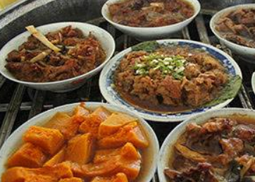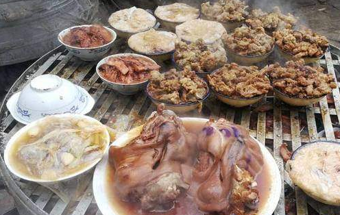 这是大叔做的扣碗,是一道河南等地的特色菜,扣碗的做法更是种类繁多,味道更是妙不可言。在大部分都是肉类原料制作,一般采用先炸后蒸的方式制作,扣碗种类有蒸排骨,黄焖鸡,肘子,芥菜肉,海带肉等……这是大叔刚做好的扣碗,一大锅需要两个人才能抬动。