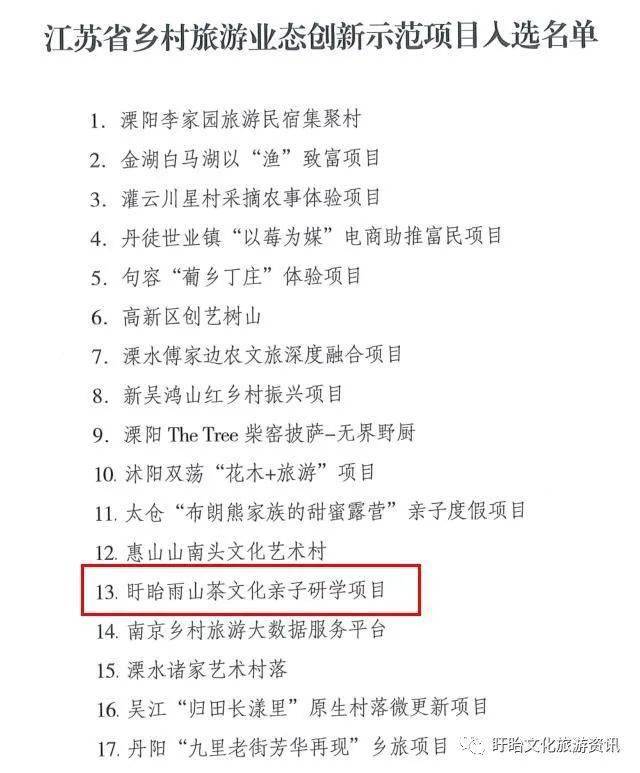 近日,在第十四届江苏省乡村旅游节上公布的江苏省乡村旅游业态创新示范项目名单中,“盱眙雨山茶文化亲子研学”项目榜上有名!