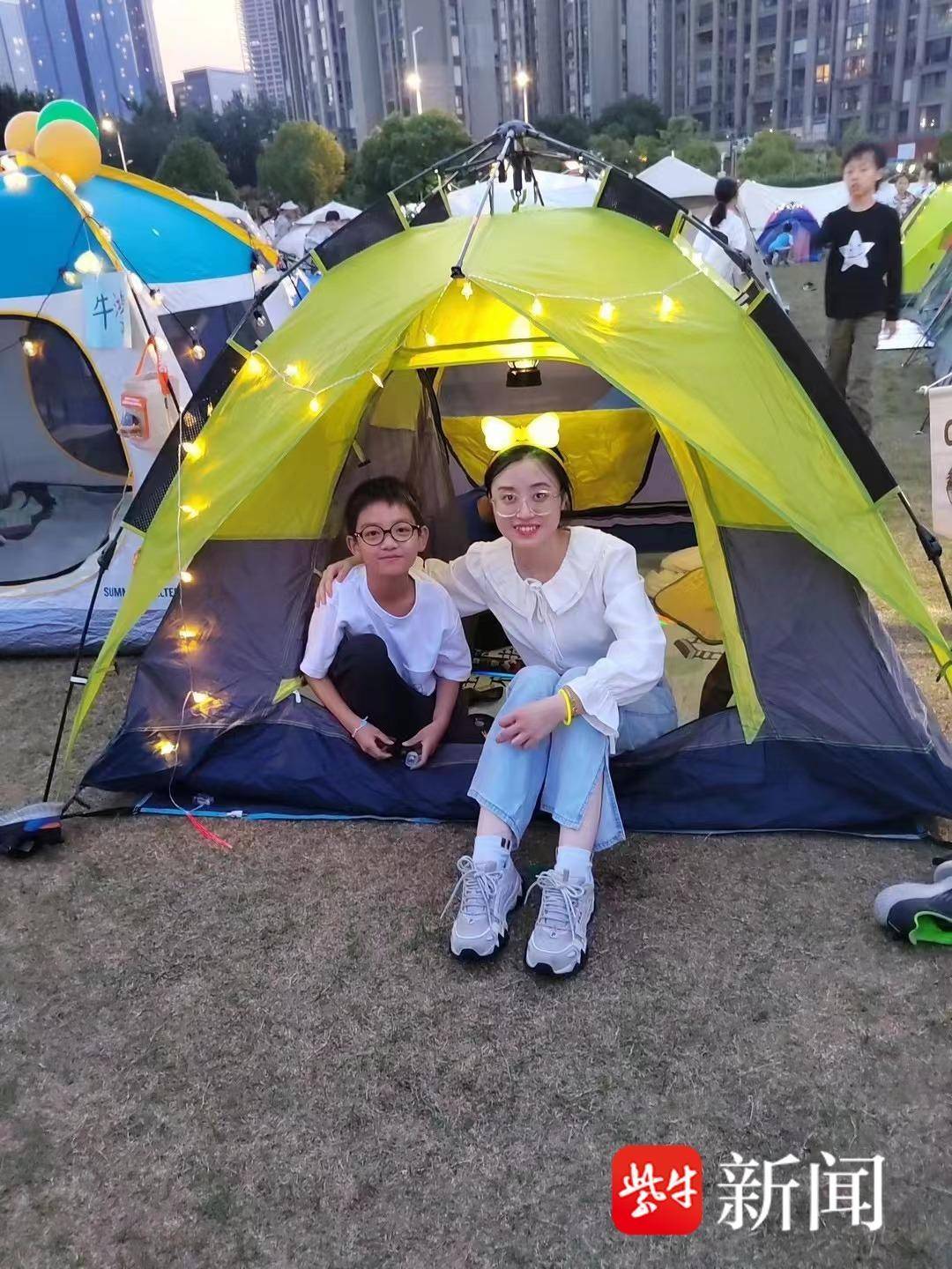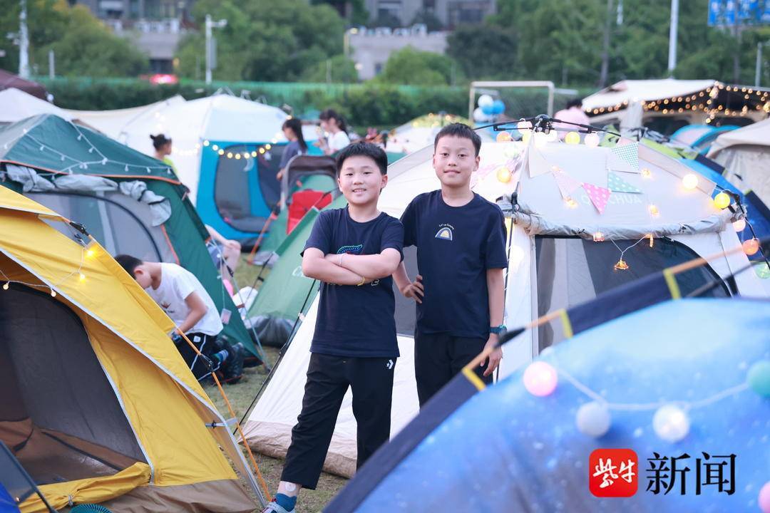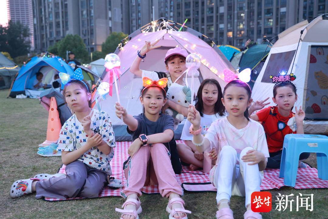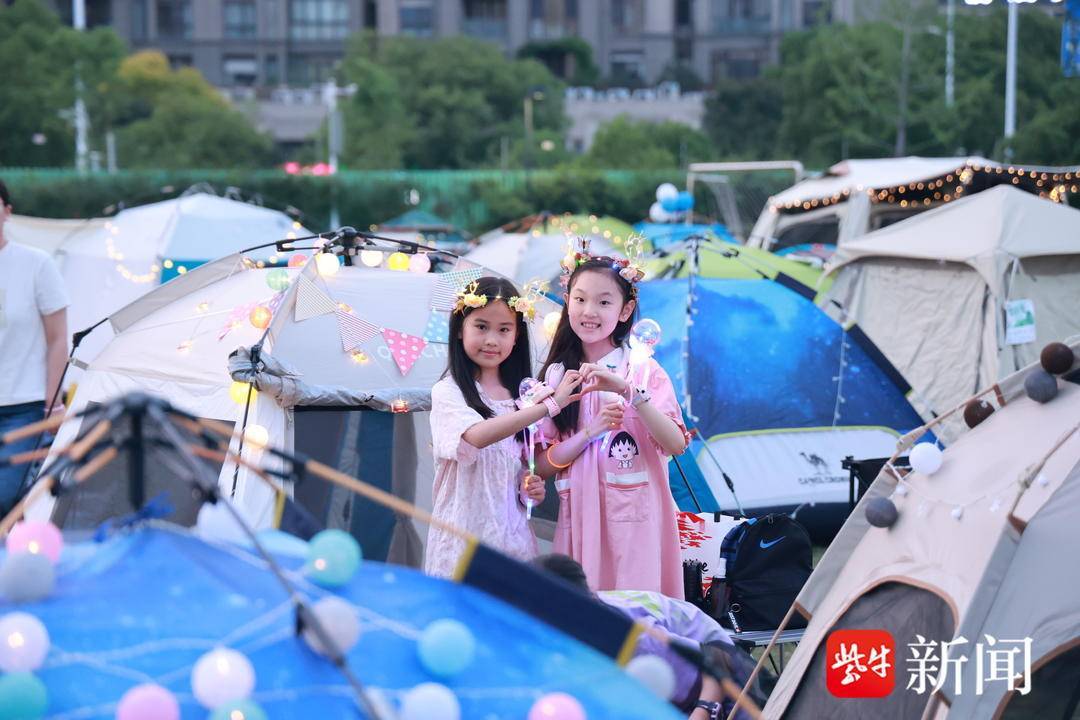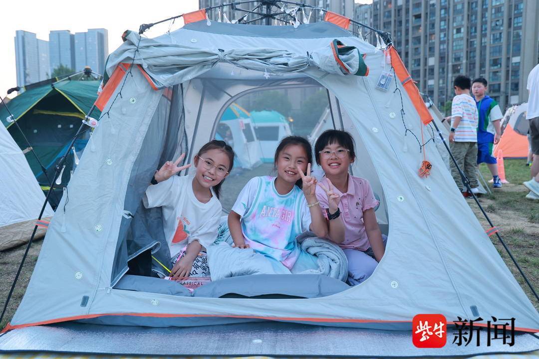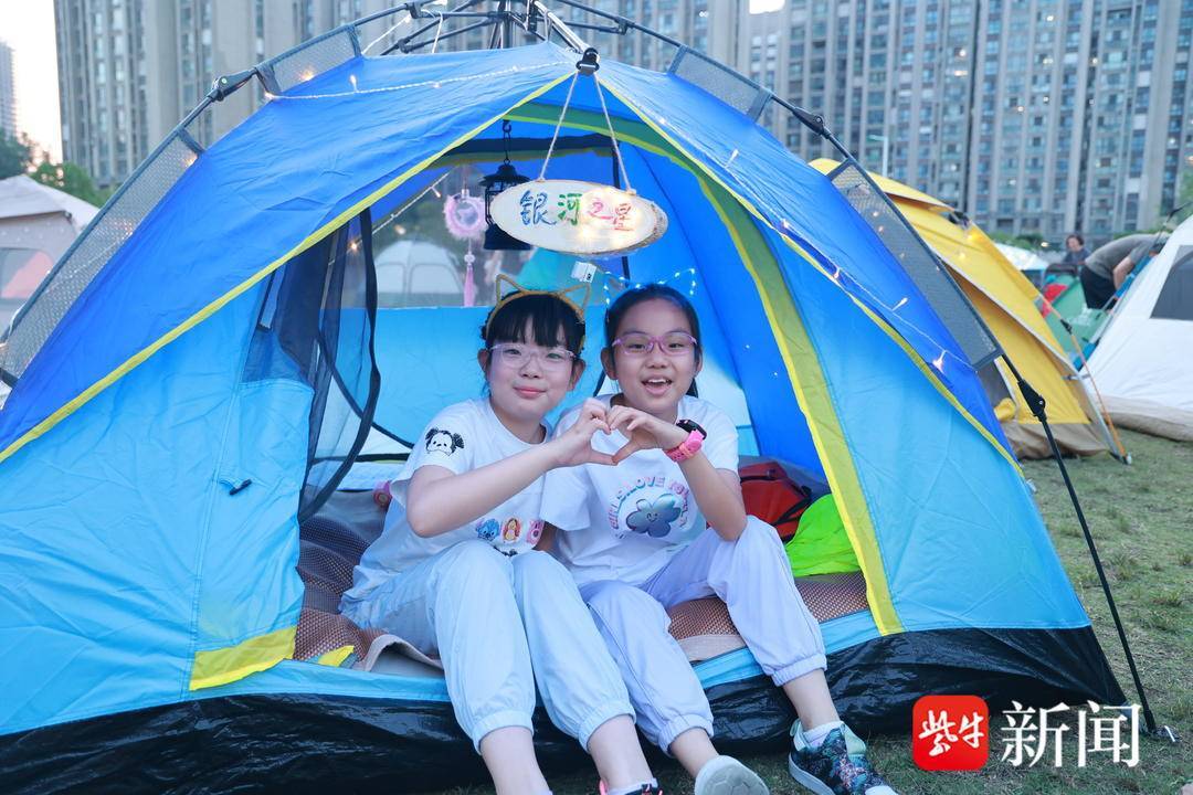 你来扛、我来搭,你来铺、我来理……当晚6点半,南师附中江山小学的操场上一派忙碌景象,在孩子和老师的巧手下,一顶顶露营帐如变魔术般呈现在操场上,偌大的操场摇身变成了温馨的居所,孩子们不仅给自己的小窝准备了彩色灯带、荧光棒等装饰物,还别具创意地给小窝取名“头等舱”“爱的小屋”……一个个帐篷富有童趣,充满温馨。