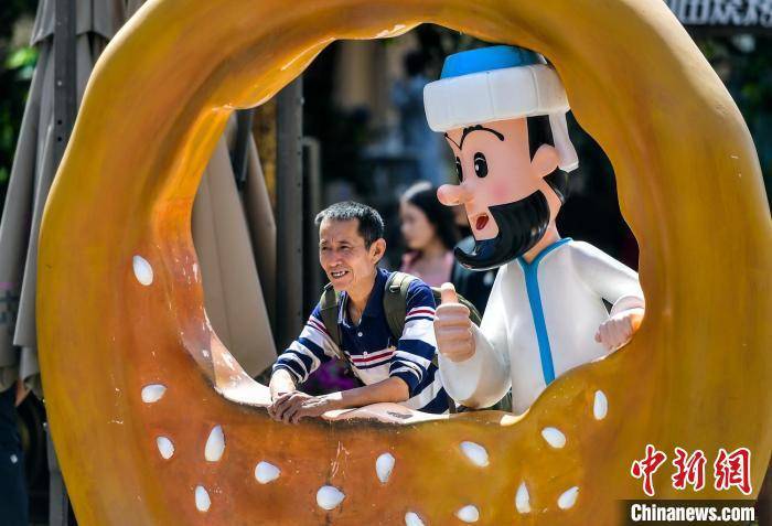 游客与阿凡提装置合影。 刘新 摄