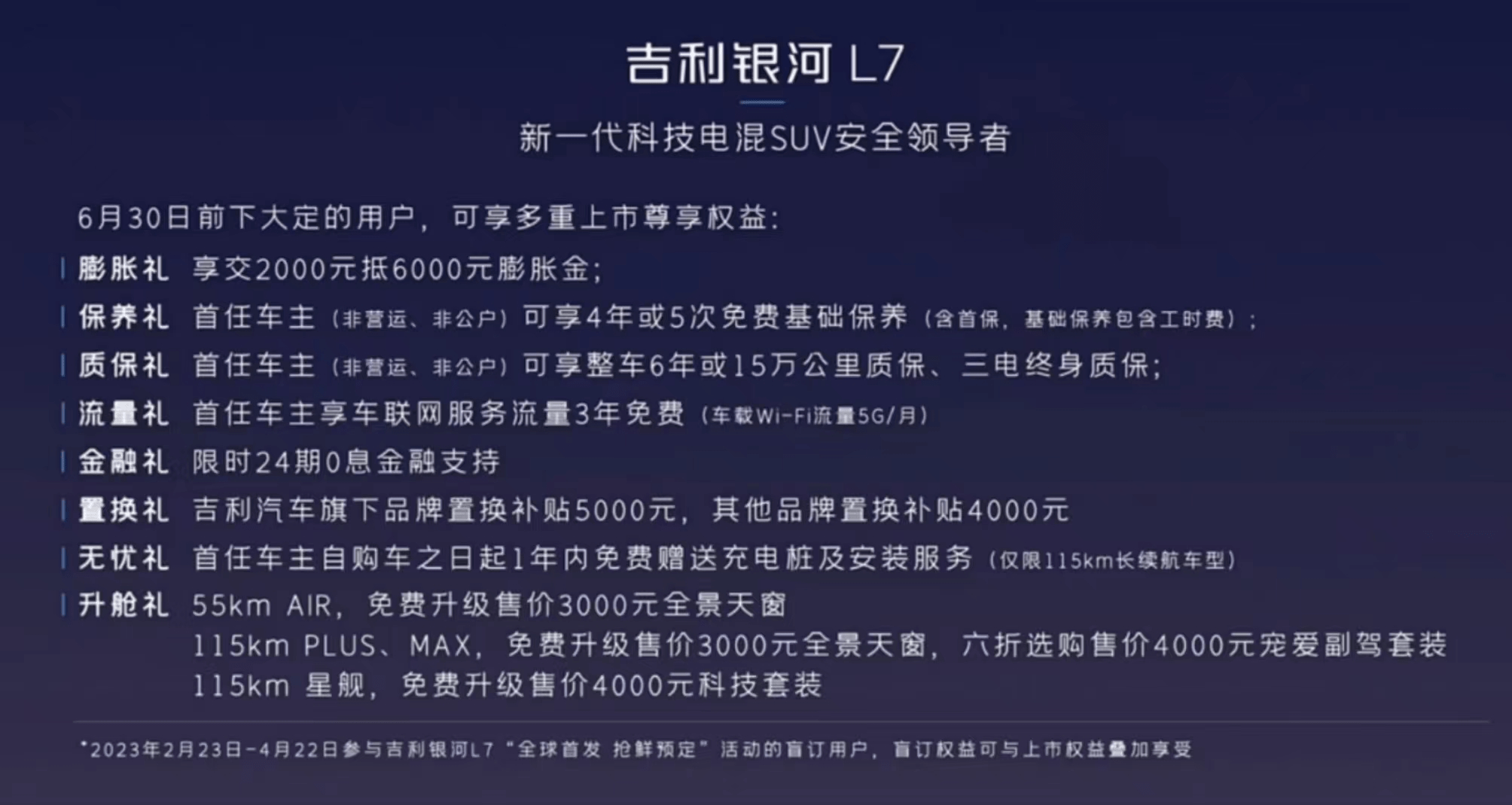 综上所述,吉利银河L7的上市发布标志着新一代安全防护标准的诞生。凭借其独特的神盾电池安全系统和全方位的安全防护设计,吉利银河L7引领着中国智能电混进入新一代。无驾控不电混、无智能不电混、无安全不电混,吉利银河L7重新定义了智能电混SUV的标准,并为用户带来了极致性能和节能的出行体验。它的推出必将为新能源汽车市场注入新的活力,同时也为广大消费者提供了更加安全可靠的选择。
