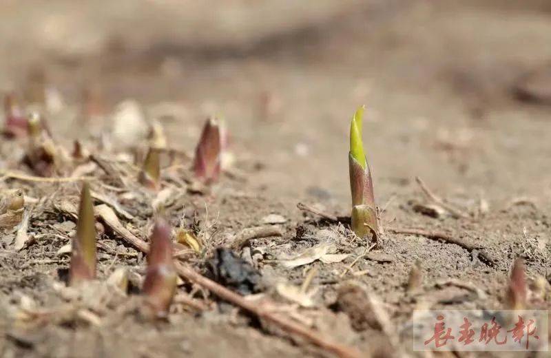 相机或者手机拍摄时,可调一下感光度,尽可选择减低感光度,这样能把细节表现得更为细腻。在阳光下拍摄新芽,可以运用较强的明暗光比,把背景压暗,拍出新芽“破土”的巨大能量。