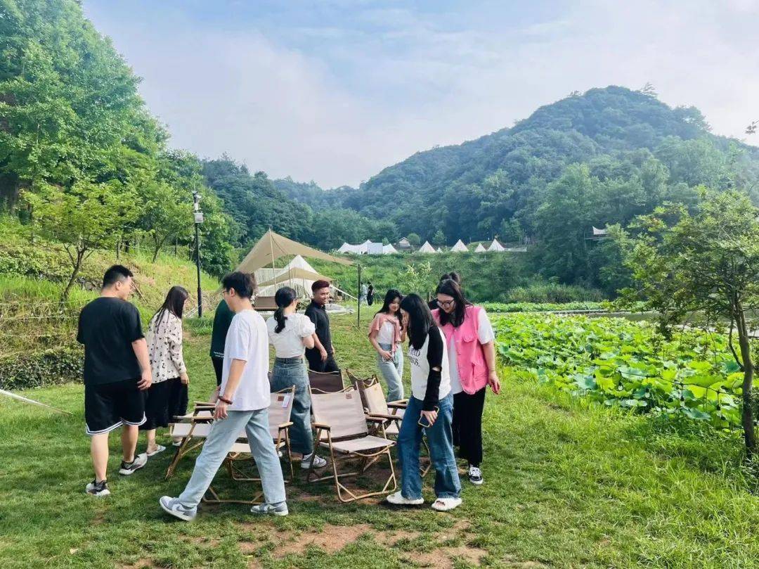 “今天是工作日,我们11个小伙伴就趁别人上班的时候,错峰来这个网红露营点团建了。”公司负责人刘先生说,他们都来自未来科技城的一家互联网企业,平时工作忙,这次是来临安短暂放空的,花1000多元就能租天幕、吃零食、玩抢凳子、飞盘等5个游戏,团建一下午,很划算。