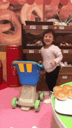动图中jojo一刻都没停下来,不是在气垫床上开心地蹦跳,就是推着小推车假装在超市选购商品,大人很习以为常的事情在小孩子眼里都乐趣无穷,小孩子的世界最无忧无虑了。