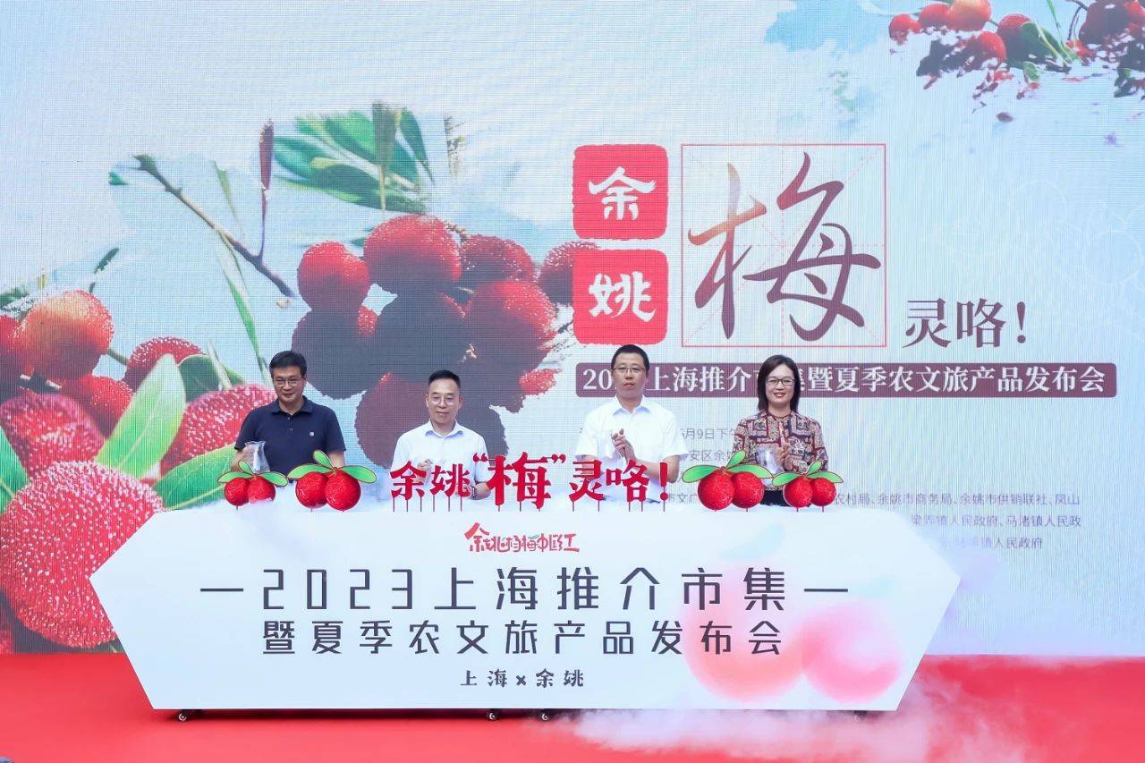 6月9日下午,“余姚‘梅’灵咯!2023上海推介市集暨夏季农文旅产品发布会”在上海市静安区余姚路同乐坊广场举行。