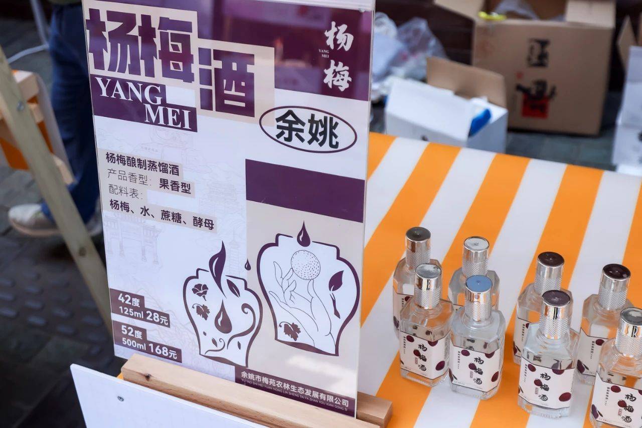 活动现场,余姚“梅”灵咯-主题市集也正式启动。7家杨梅企业组合展示余姚杨梅,令人眼花缭乱。“来尝尝我们的大棚杨梅!”来自华标杨梅园的俞华标是余姚丈亭出名的杨梅企业,他的大棚杨梅不仅使得杨梅质量更好,还能大大延长杨梅的售卖时间。其余来自余姚的十余名商家也带来了各自新鲜有趣的杨梅周边,杨梅蜜饯、杨梅酒吸引着来自上海的市民眼球。