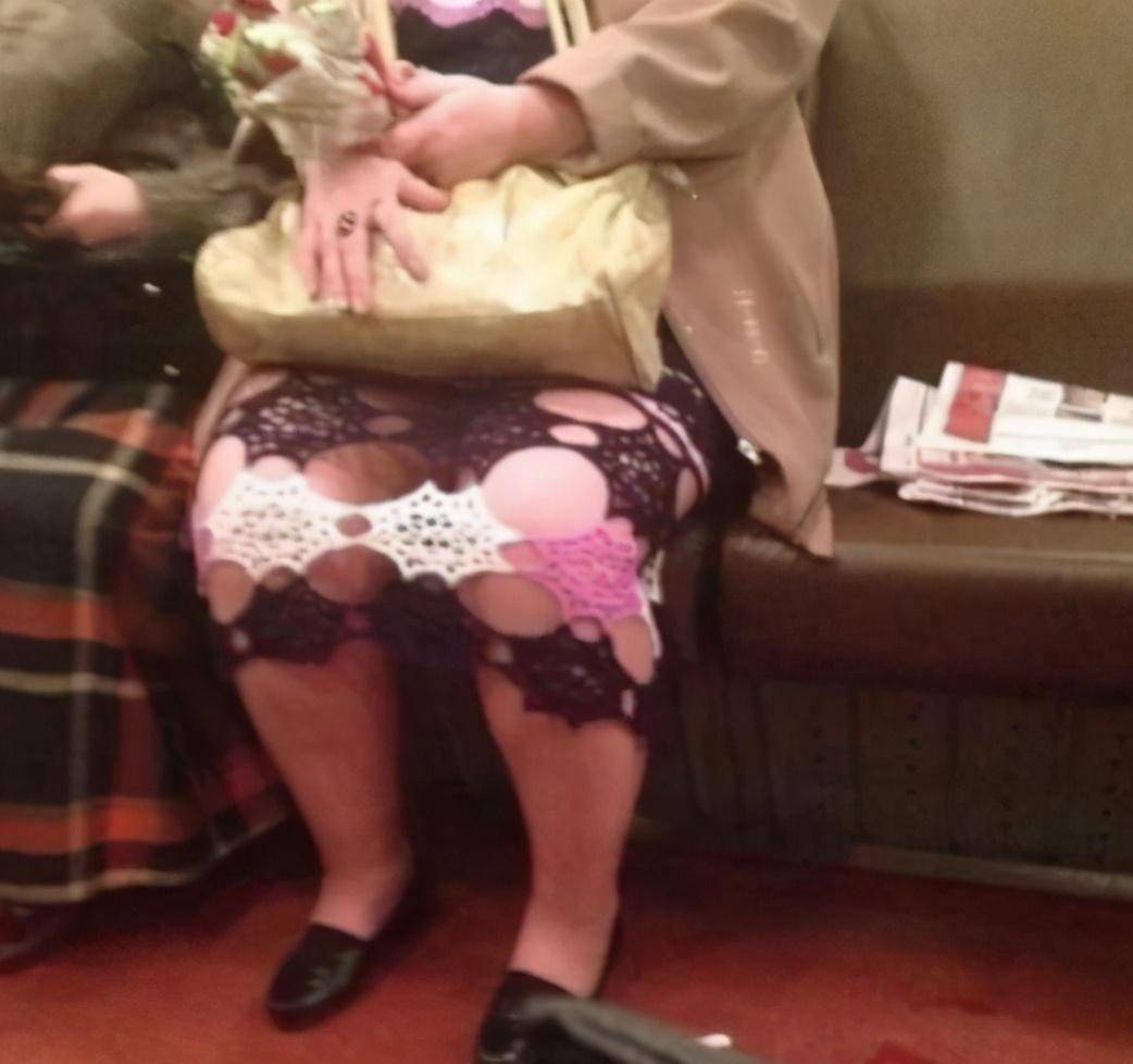 大妈你这裙子也太奇葩了吧,这样的设计会给人带来很大的错觉啊,哈哈哈哈~