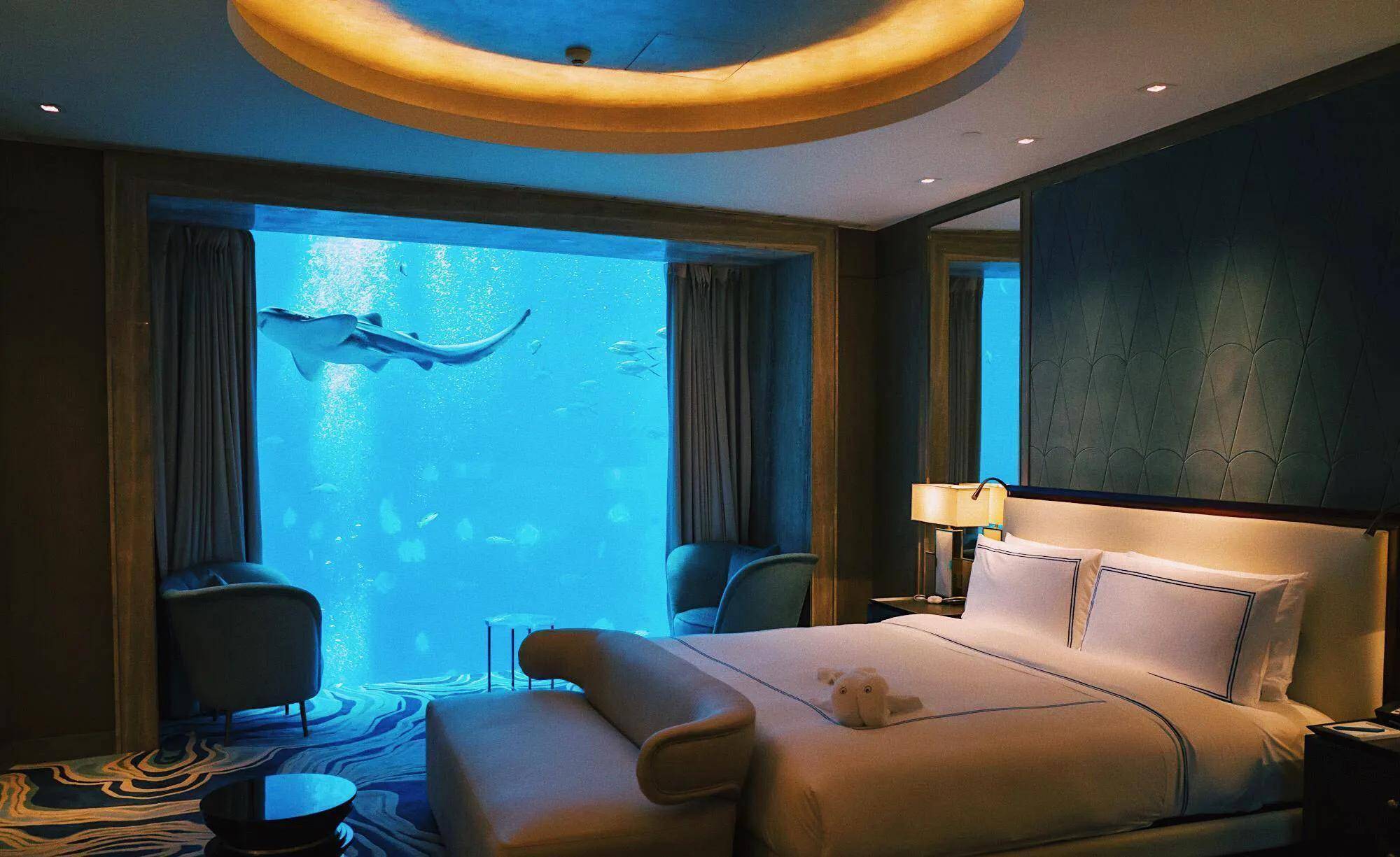 这家酒店就是三亚·亚特兰蒂斯,位于海棠湾的海滨。2018年正式启用,耗资110亿建造。该酒店据说由80多位国际知名建筑师设计。这是一家超五星级酒店。拥有1314间海景房,最低房价1688元一晚,最贵10万多一晚,这间10万多的房间是网红水下套房波塞冬水下套房,一晚108888,在这个房间您可以在眼前欣赏许多海精灵在游来游去。我必须说,贫穷限制了我所有的想象力。