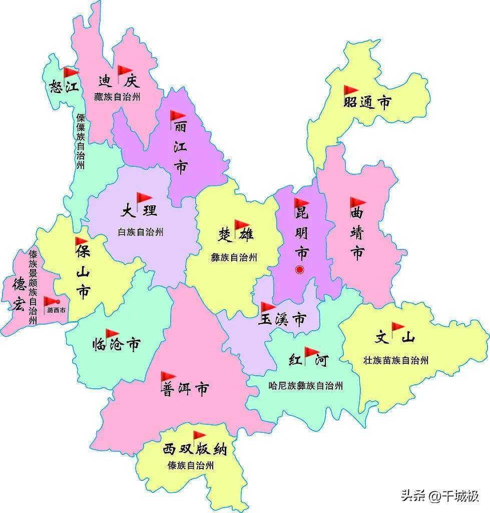 云南省,又称“云”,位于中国西南部,省会昆明。我国边境线最长的省份之一,全省疆域西北高,东南低。全省辖8个地级市、8个自治州。