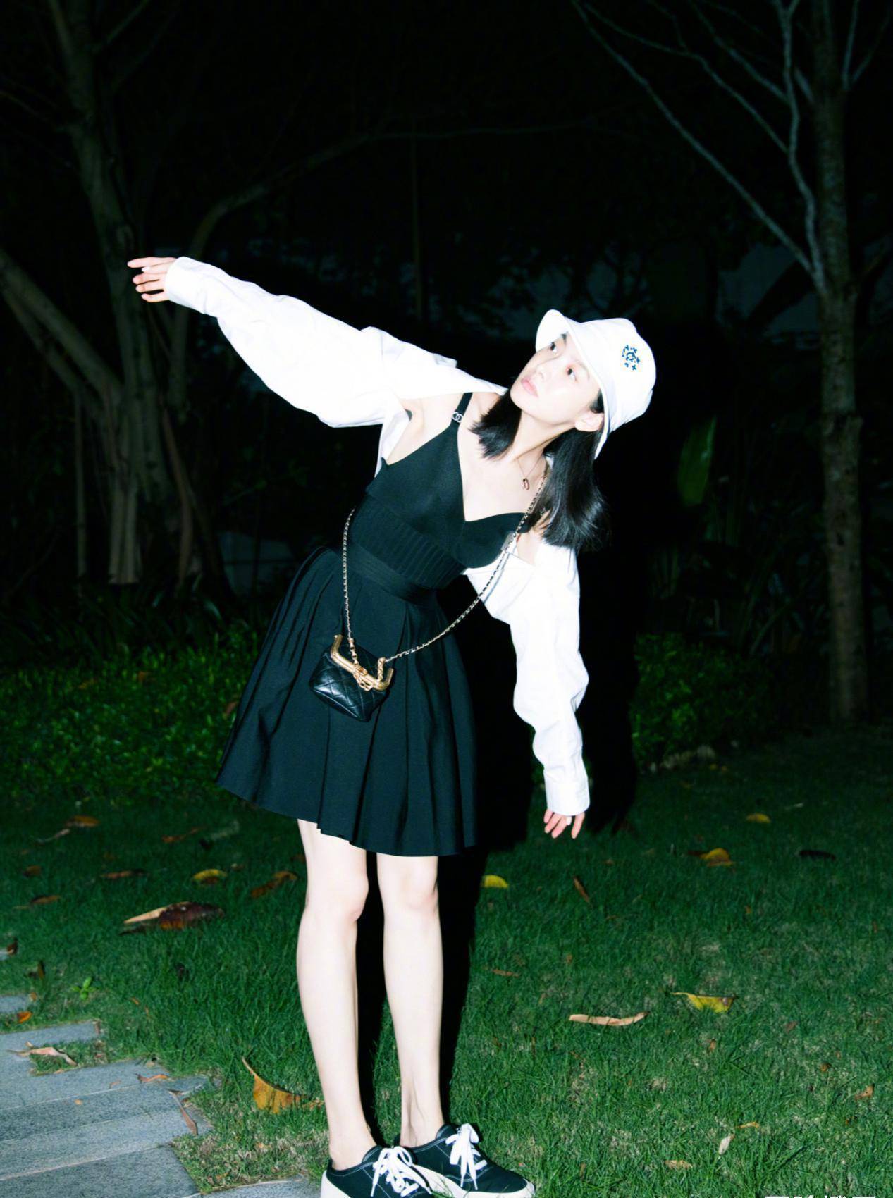 比起其他花里胡哨的裙装设计,小黑裙的简约反而经久不衰。这次,宋茜就选择了一款黑色连衣裙,收腰的设计能够展现纤细的腰肢,裙摆带有褶皱则会显得服装更立体有型。宋茜用白色开衫与之相搭,则使整体的风格中和在甜与酷之间。
