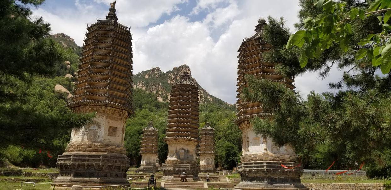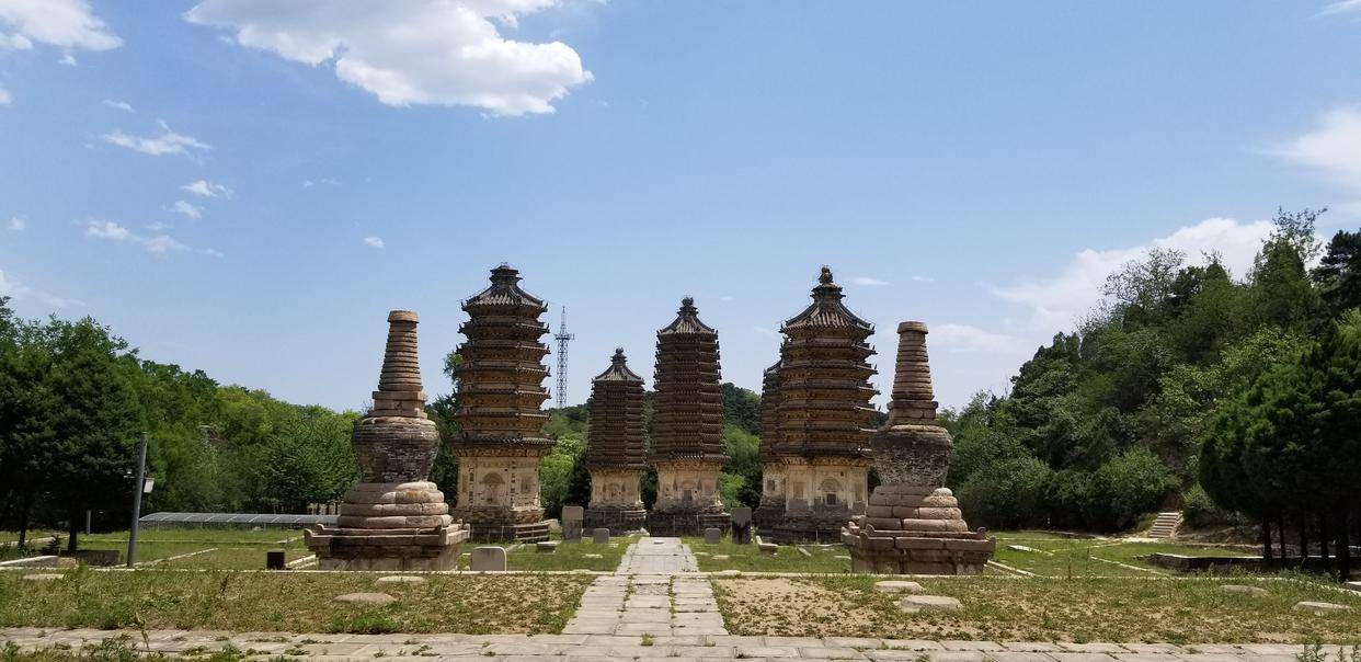 18座佛塔,相对集中分布。最集中最核心的是法华禅寺遗址区的7座佛塔。林立与银山脚下,以中轴线对称布局,古塔高低错落,砖石雕刻精美,堪称景区的古塔建筑奇观。