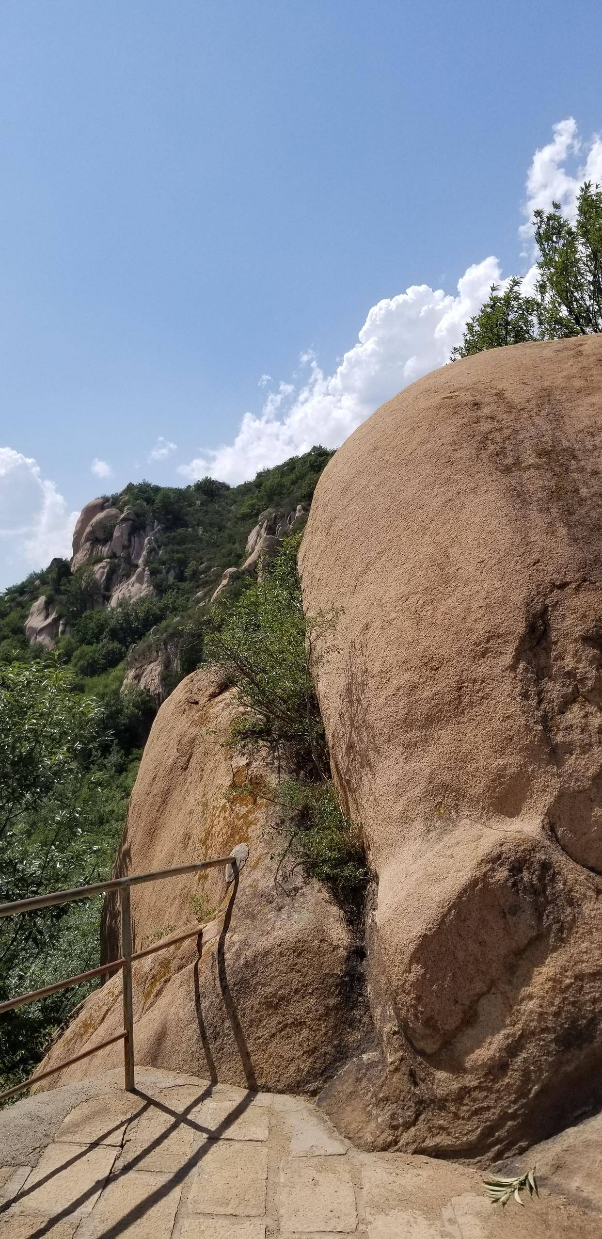 主峰以下绝大多数岩体均无棱角,呈浑圆状,即使是石崖、岩柱,也无尖峰,这就是花岗岩地貌雄浑之美的典型形态特征。