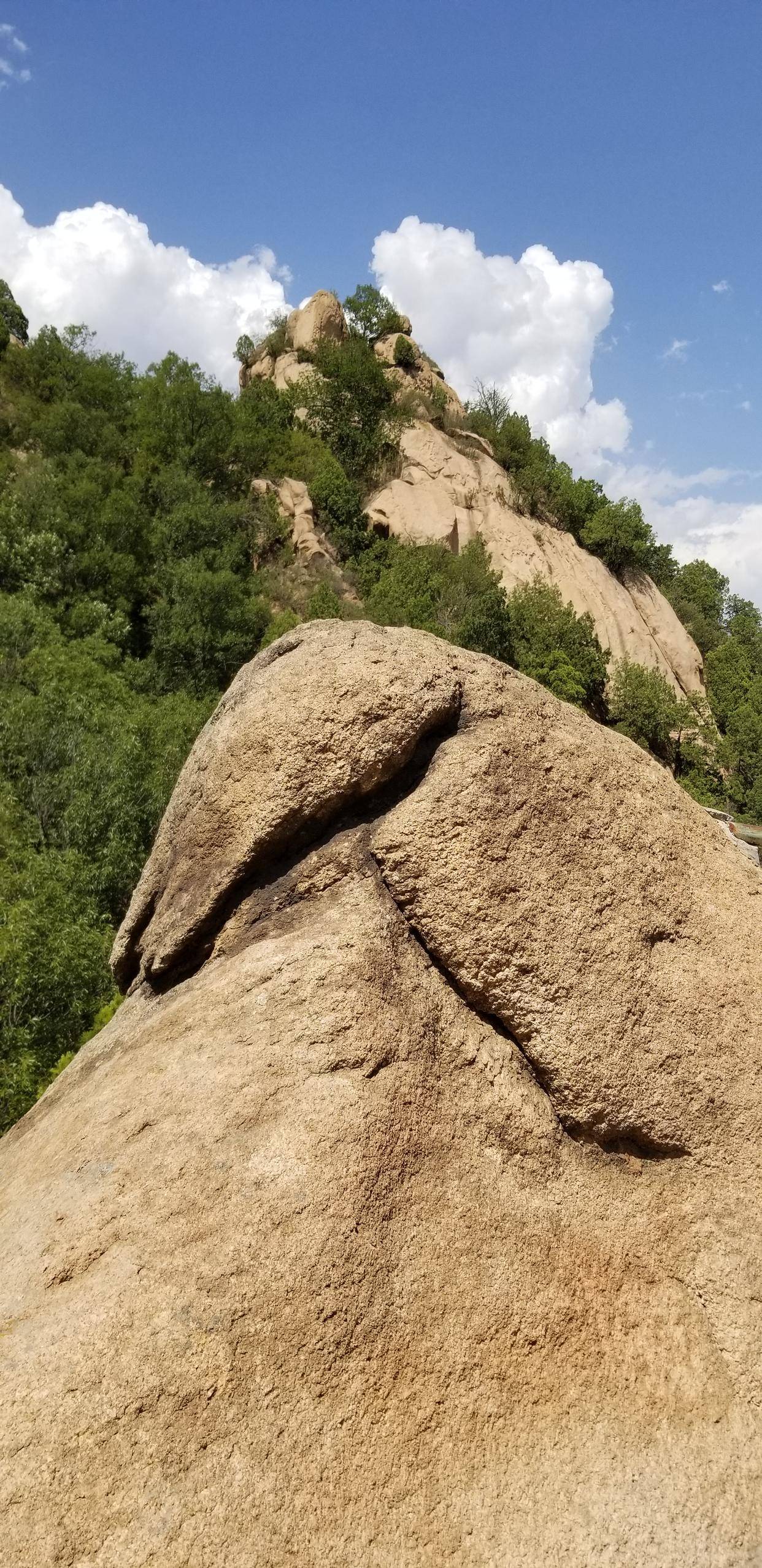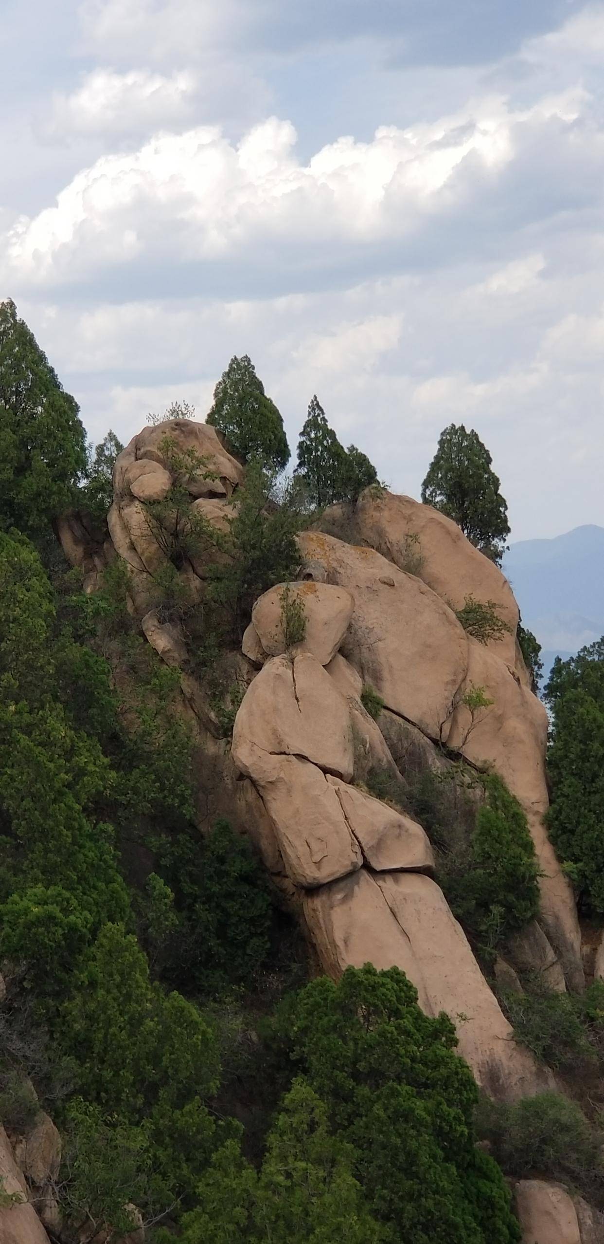 这里大部分区域花岗岩节理不甚发育,或者说节理间距巨大,经过风化(主要是球状风化)形成诸多雄壮浑圆巨型花岗岩单体地貌。