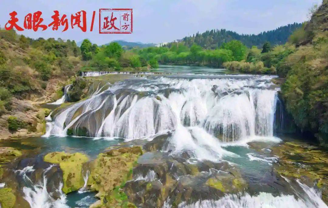 陡坡塘瀑布是黄果树瀑布群中瀑顶最宽的瀑布,瀑顶宽105米,高21米。