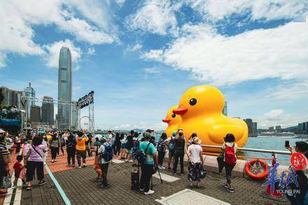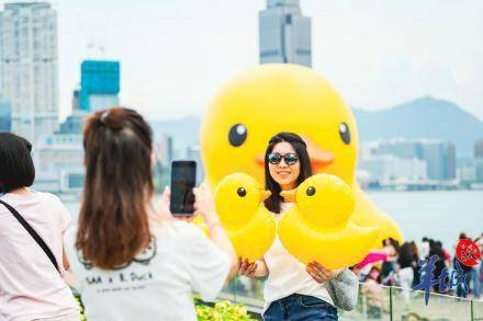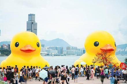 时隔10年,大黄鸭再次返港,6月10日上午,为期两周的大型海上公共艺术展《橡皮鸭二重畅》在香港维多利亚港添马公园海面正式展出。不少市民一大早便前来打卡,许多游客更是慕名前来,带着大黄鸭的模型打卡拍照。香港地铁18个站点均设置了打卡点,在香港金钟地铁站,也有不少人停下脚步,与大黄鸭合影留念,金钟站E出口更有大型的“橡皮鸭主题出口”,高6米、宽24.5米的巨型玻璃天窗成为亮点,这个半圆形的玻璃天窗首次变身成鸭子脸,造型可爱!展览时间:6月10日——6月23日 地点:中国香港维多利亚港(中西区海滨长廊·中环段)添马公园推荐交通路线:港铁:东铁线/港岛线/南港岛线/荃湾线【金钟站E口】 打卡建议:建议带上雨伞、防晒霜、水、纸巾、大黄鸭元素的物品(羊城晚报全媒体记者 蔡嘉鸿 王漫琪)