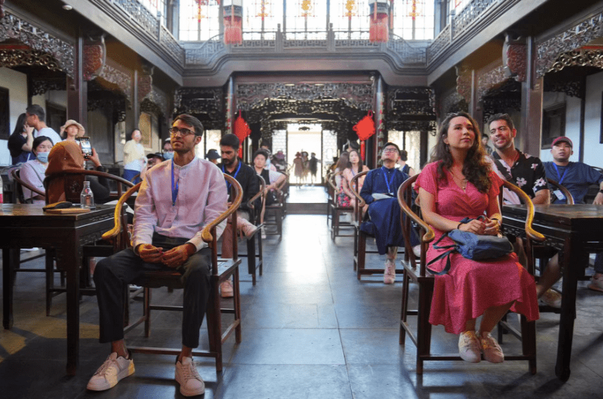 伴着民俗表演的音乐声和锣鼓声,国际体验官一行人来到曾有“华北第一宅”之称的石家大院。