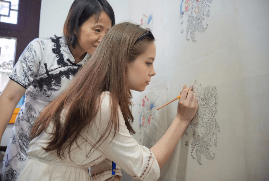 “我觉得杨柳青木板年画制作的过程很精细,成品充满感染力。今天尝试了年画的木板印刷和彩绘点染这两道工序,这是一次很新奇的体验。”杨柳青木板年画给来自泰国的爱玲留下了深刻印象。