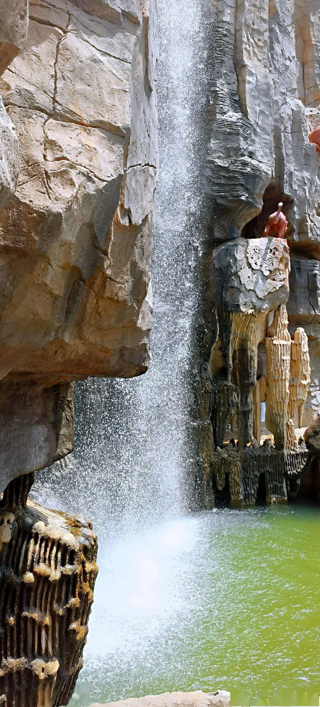 这里有仙西水洞的石笋、石幔。千姿百态,有的像大象,有的像宝塔……它们在灯光的照耀下,显得更加瑰丽多姿。在有水的地方,这些钟乳石、石笋、石幔被映在了水中,显得更加魔幻。