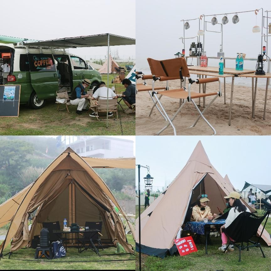 营地现场,顶级露营品牌装备、手工木作、劈柴体验和露营小课堂,为露营发烧者带来沉浸式体验;另一边海鲜烧烤、甜品咖啡、特色文创市集等将露营格调拉到最满;飞盘、橄榄球、高尔夫、排球等一系列沙滩运动嗨玩到停不下来。玩累了,还可以坐下来看一场躺营电影,享受难得的平静。